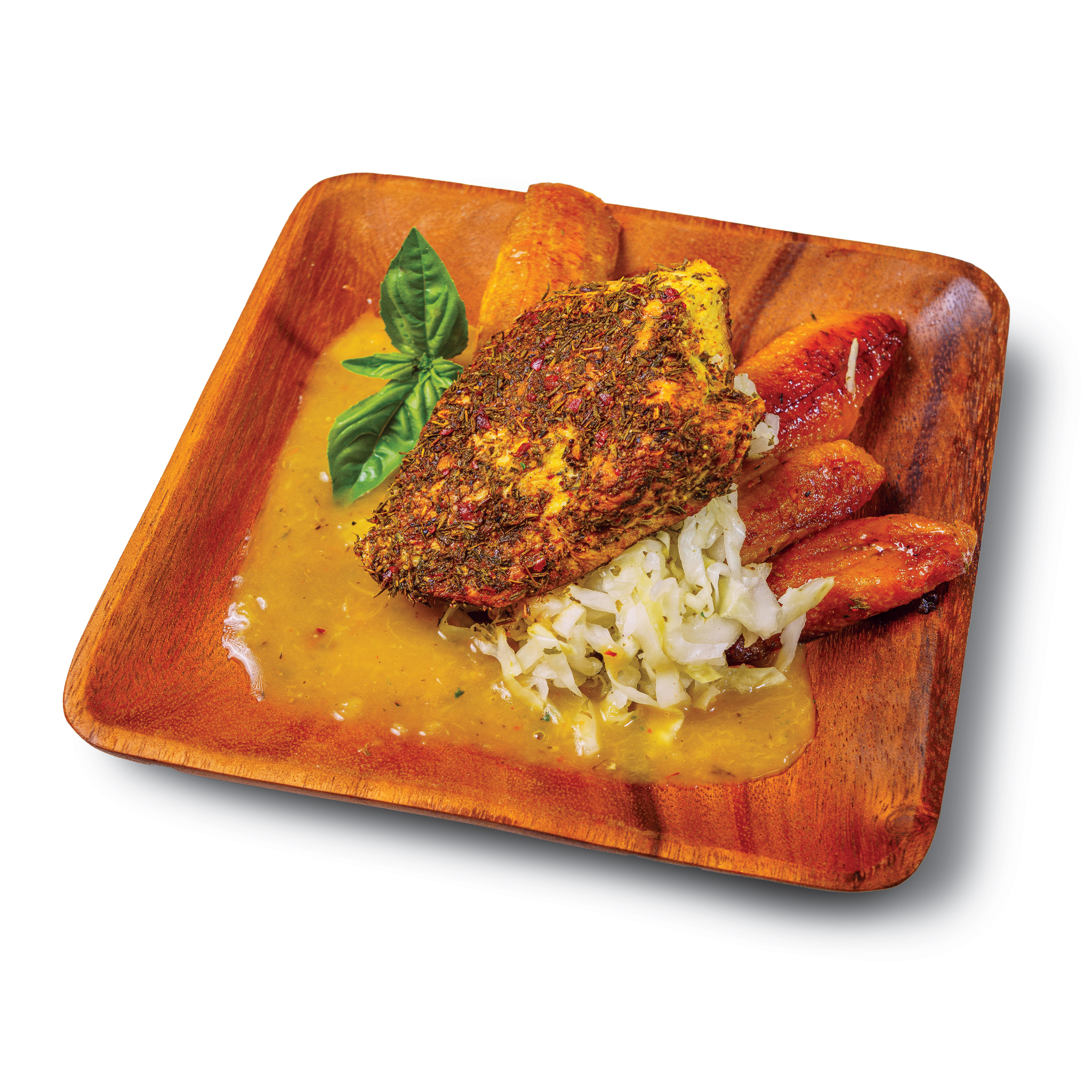 Chicken Breast Plantains Pineapple Cilantro Jerk Seasoning Rum Extract Honey Orange Juice Olive Oil Citrus Dressing